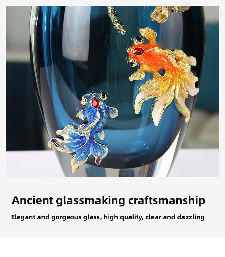 Handcrafted Artistry - Pure handmade colored glass vase with intricate fish and lotus leaf design