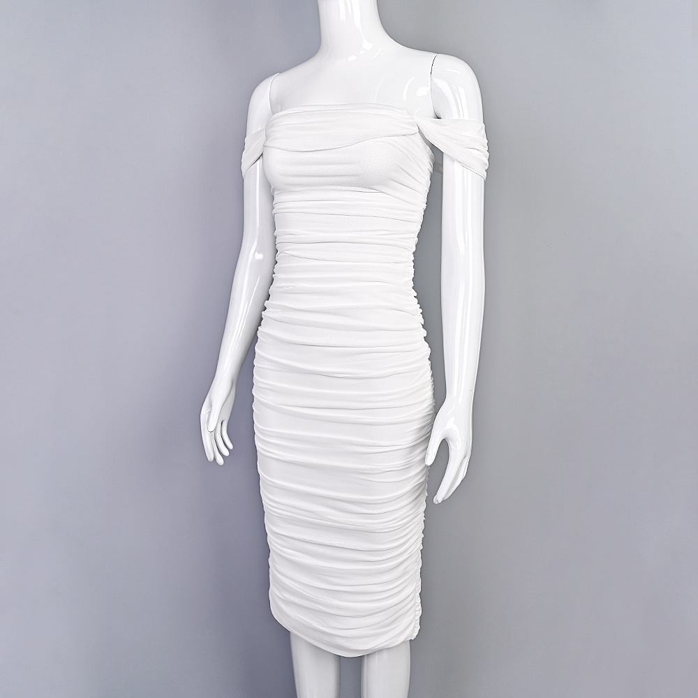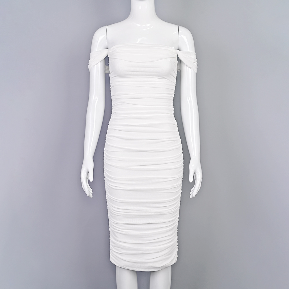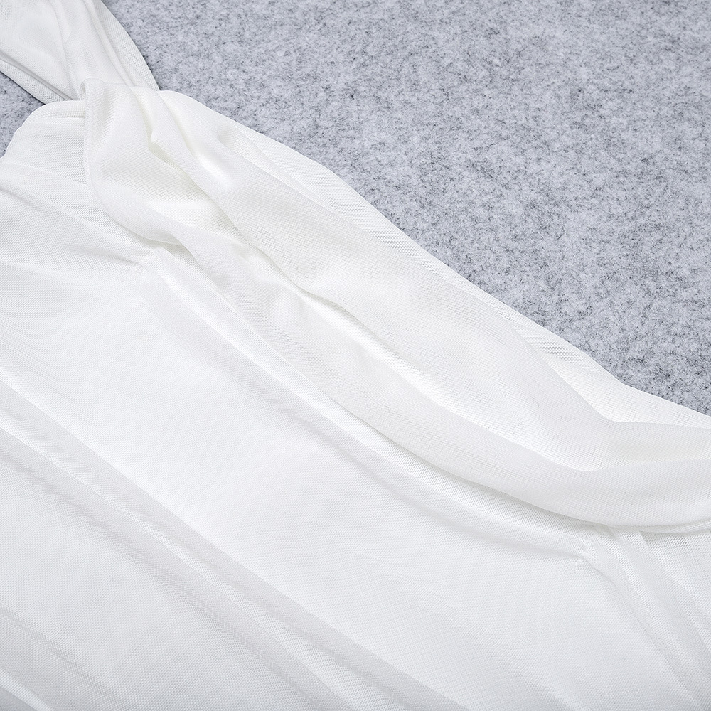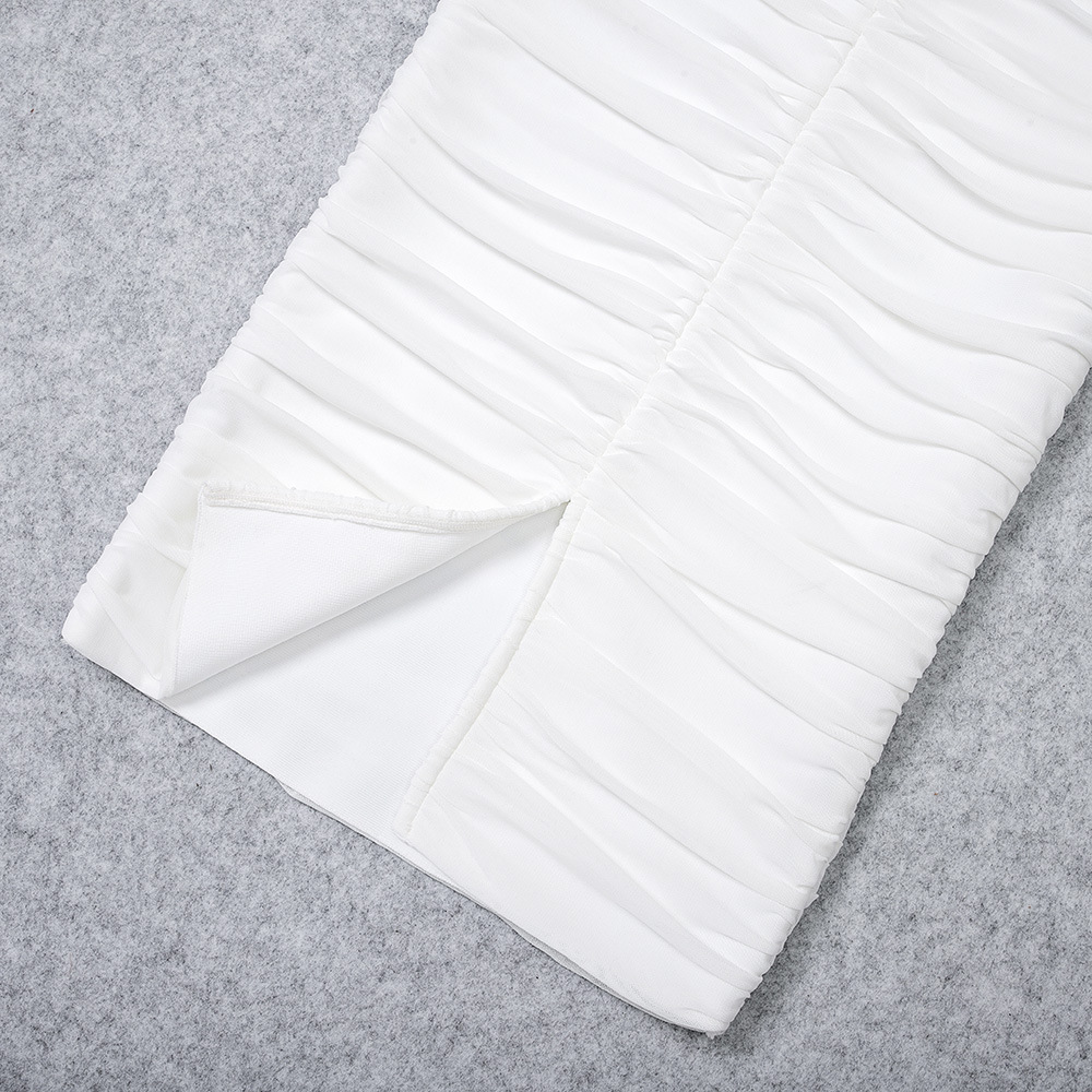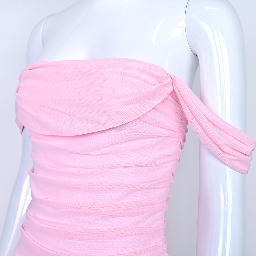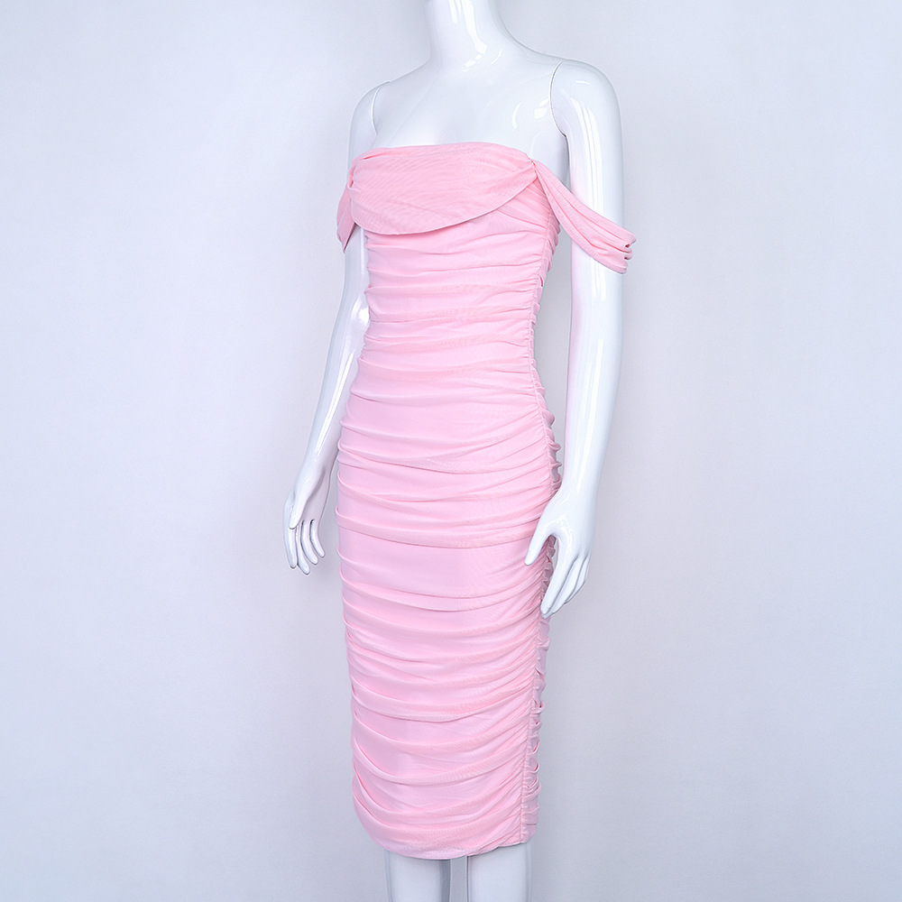 Elegant one-shoulder bodycon dress with pleated mesh details. Stretch fabric, slim fit, perfect for weddings, parties & formal events. 6 colors, XS-XXL.