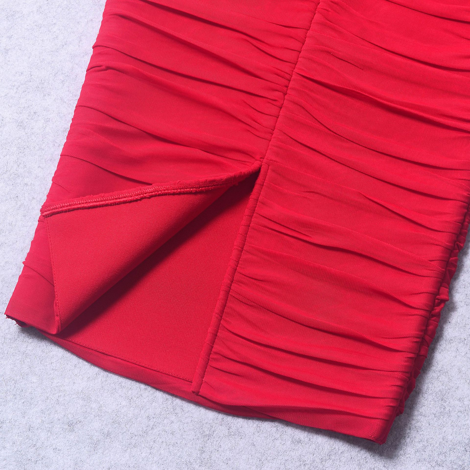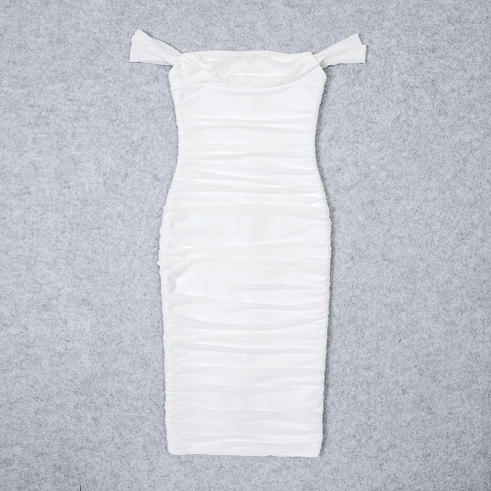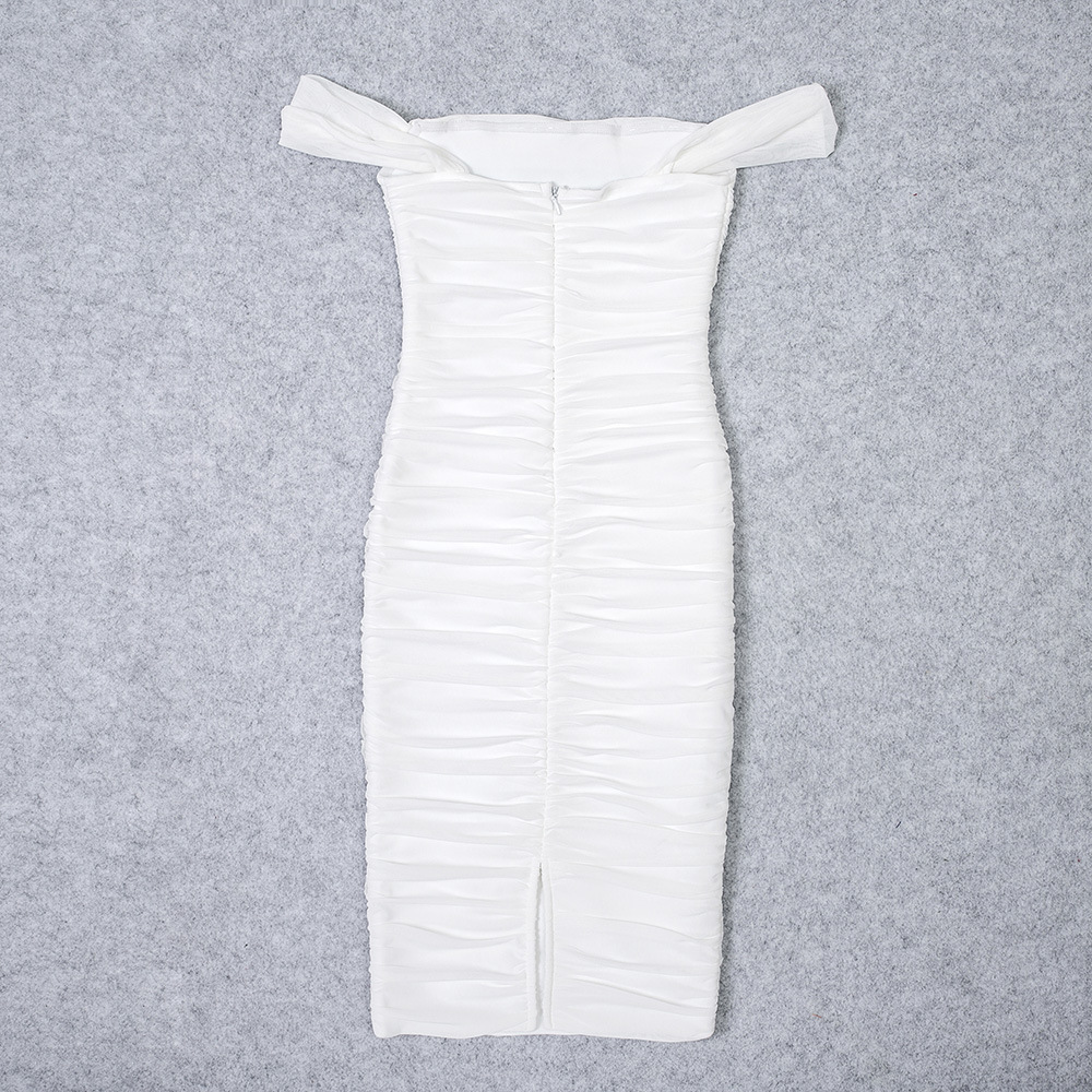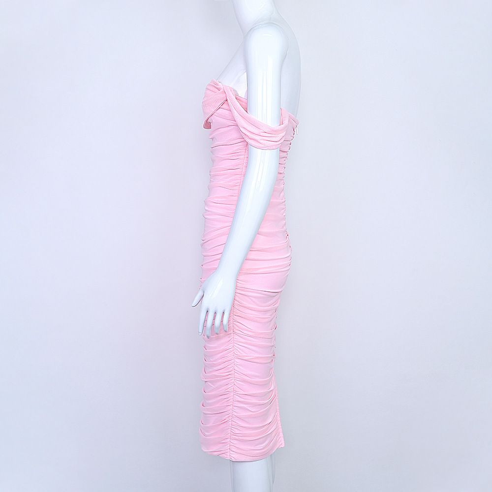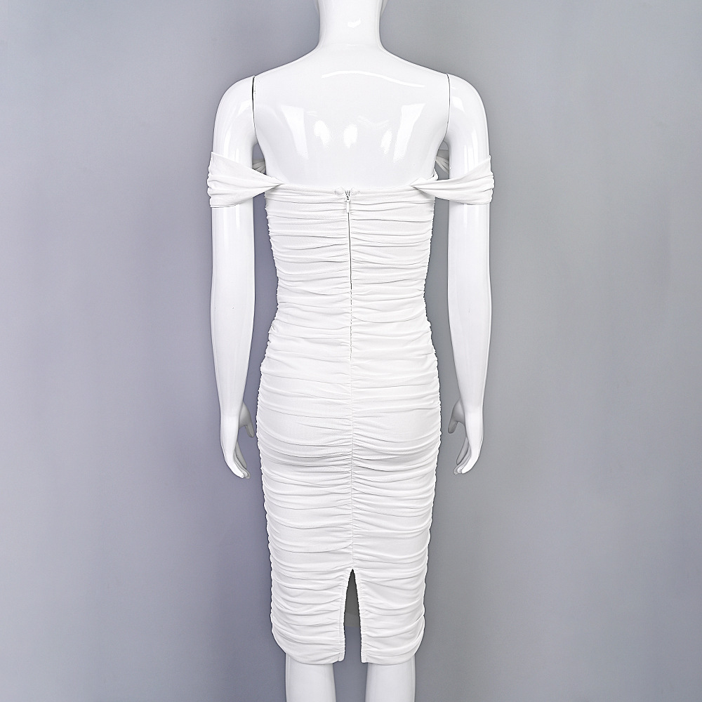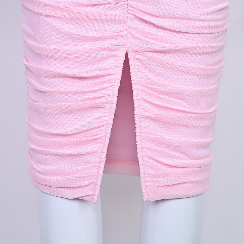 Style: One-shoulder collar, sleeveless, mid-waist, pencil skirt with slit