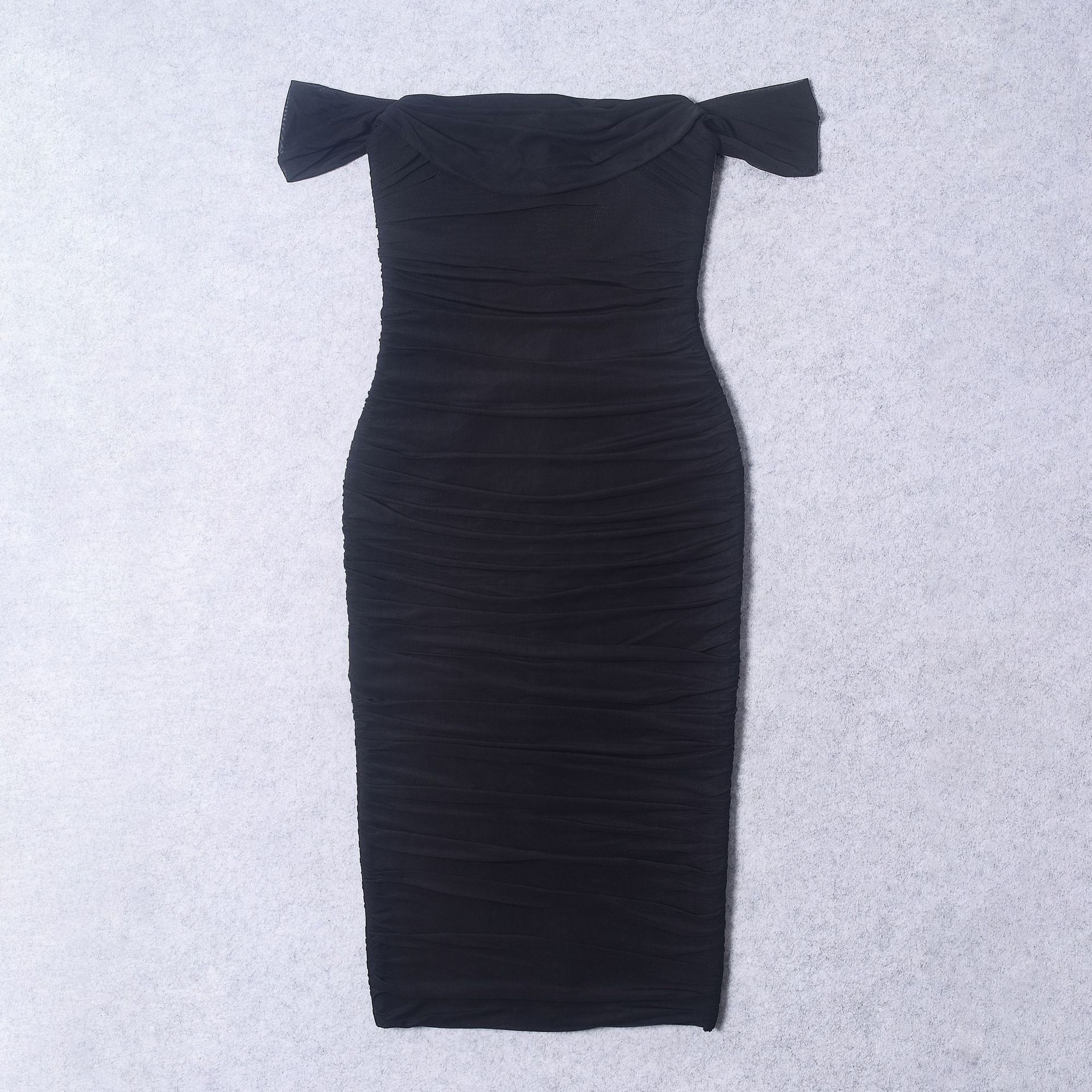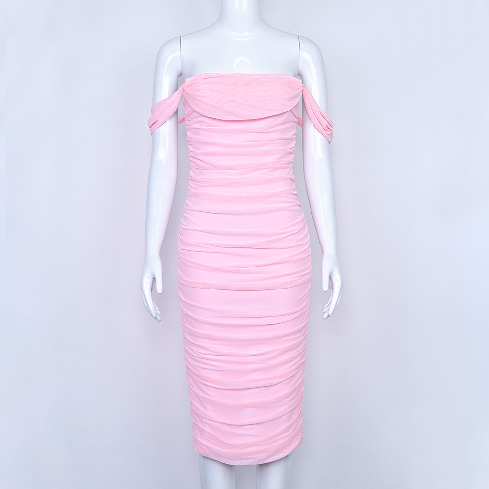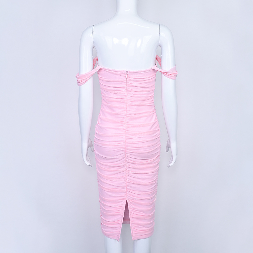 Elegant design: Features pleated mesh details and off-shoulder style for sophisticated look