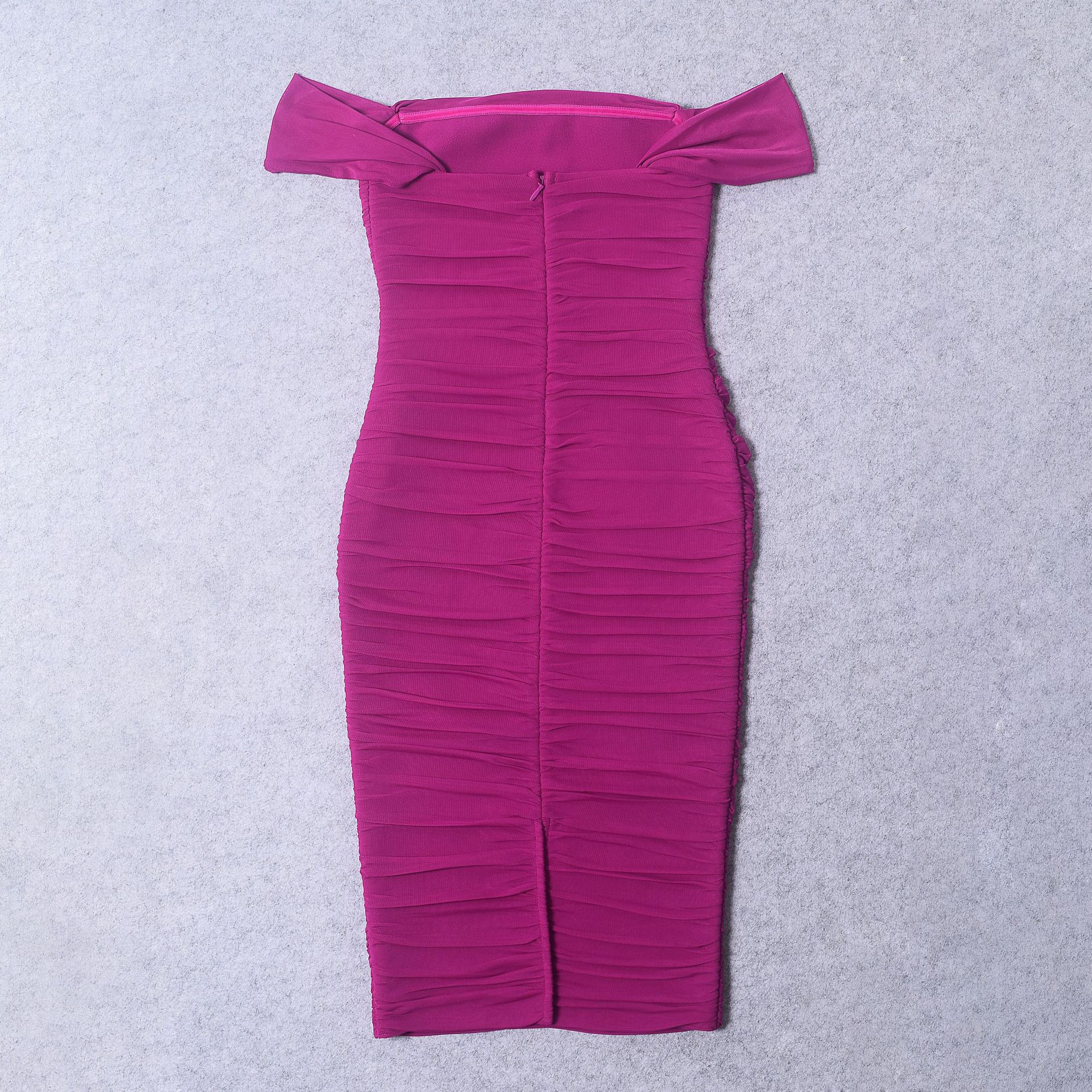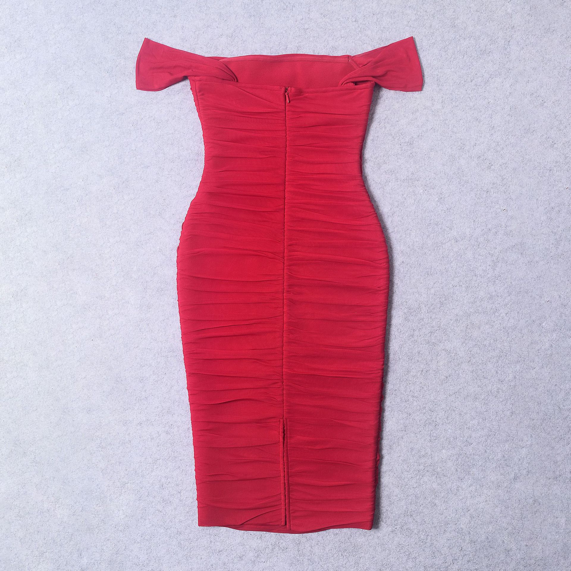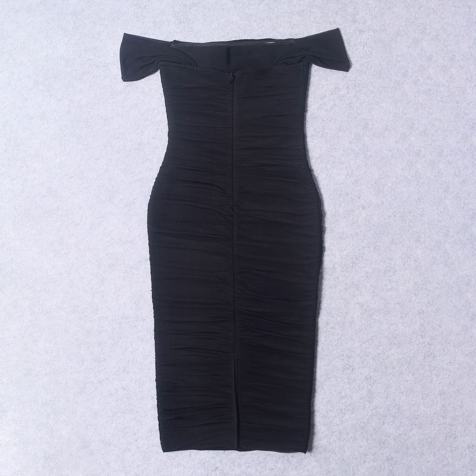 Elegant design: Features pleated mesh details and off-shoulder style for sophisticated look