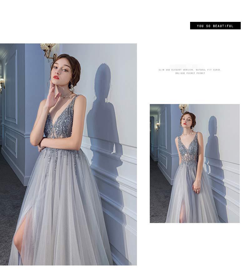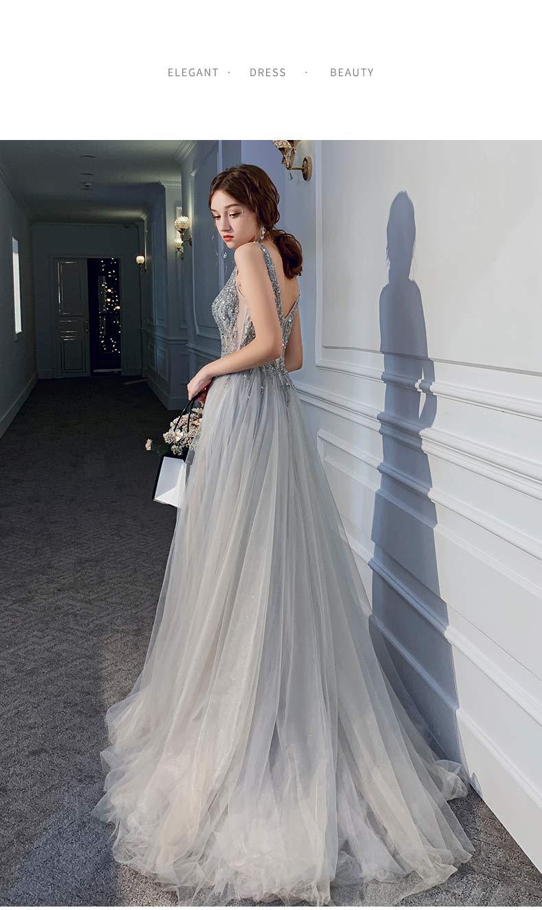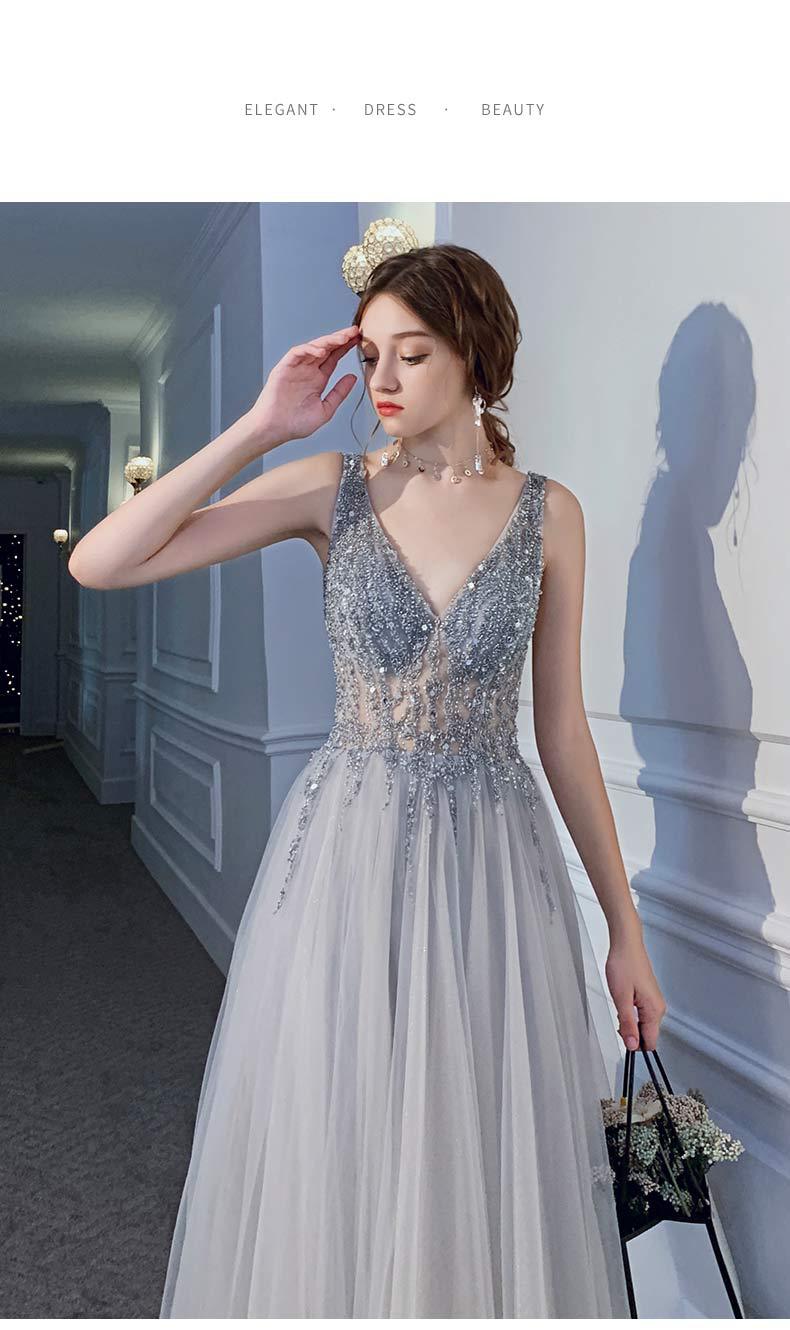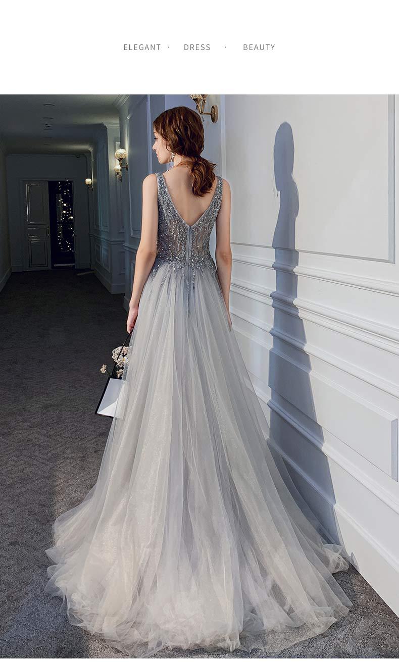 Glamorous sequin backless evening dress with deep V-neck & slimming fit. Perfect for formal events & parties. Silver gray & red. XS-5XL available.