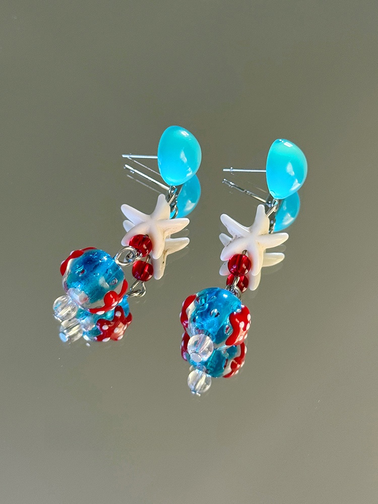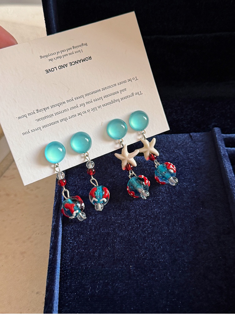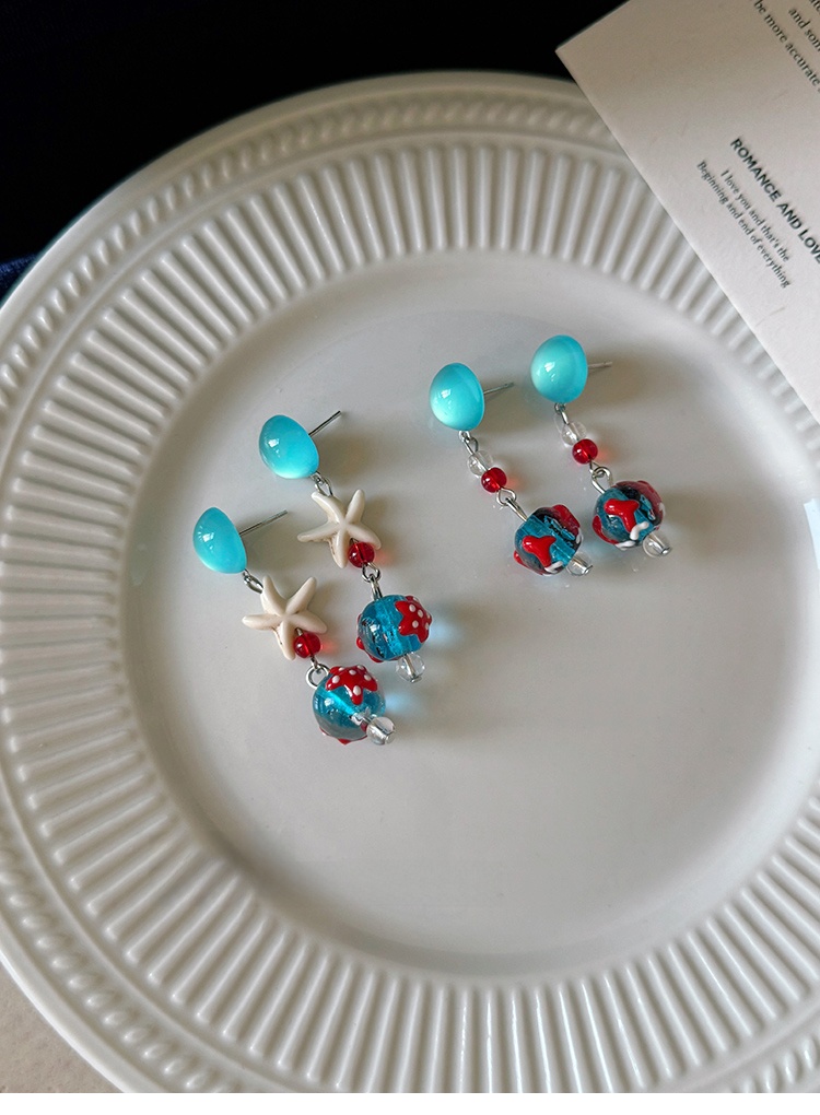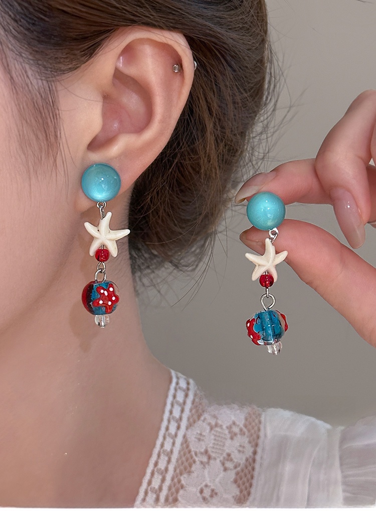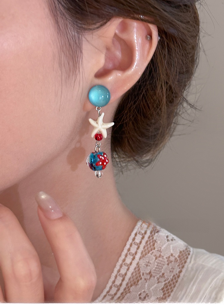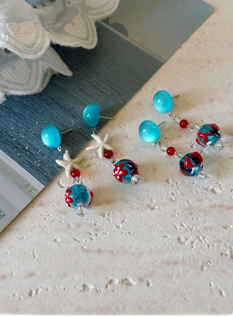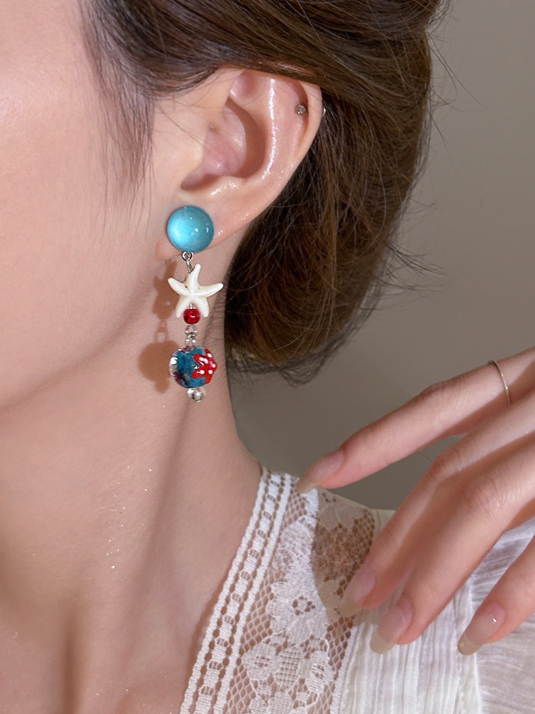 Starfish Tassel Earrings | Blue Glass Bead Drop Earrings