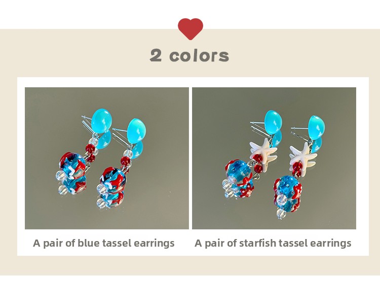 Color Options: Blue tassel earrings, Starfish tassel earrings