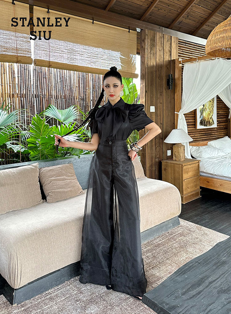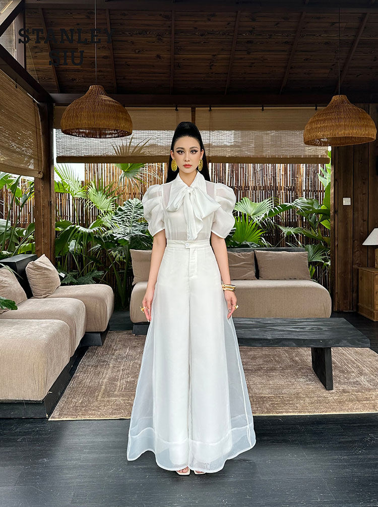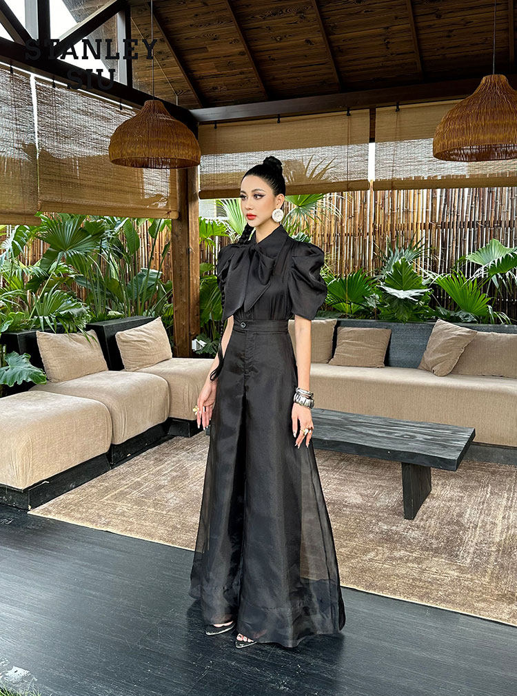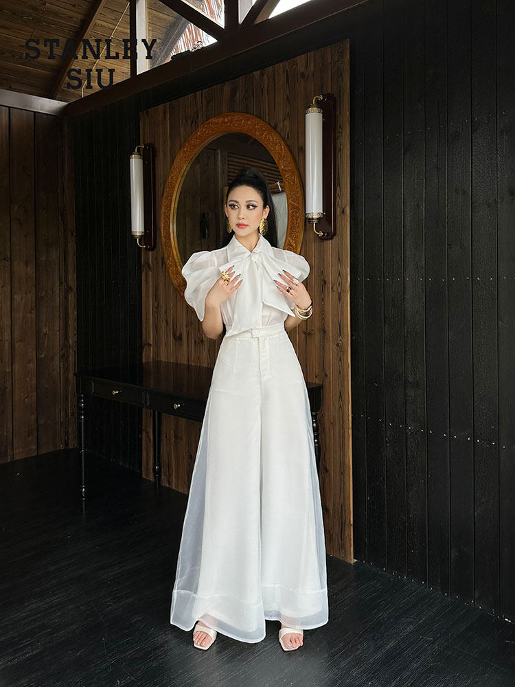 Waist: High-waisted wide-leg pants for elegant silhouette